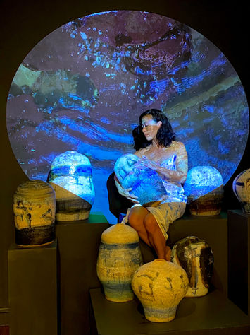 projected onto groupings of ceramic vessels accompanied by